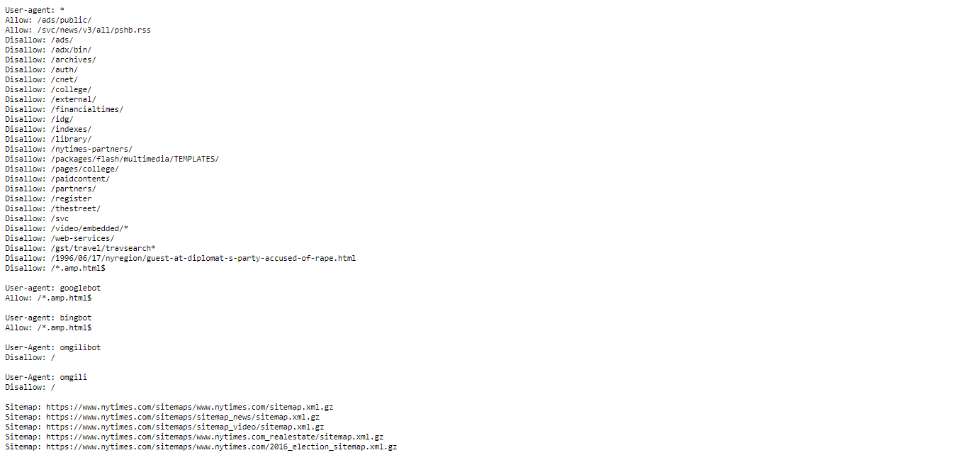 Hereâs how the Robots.txt file of the New York Times looks like: